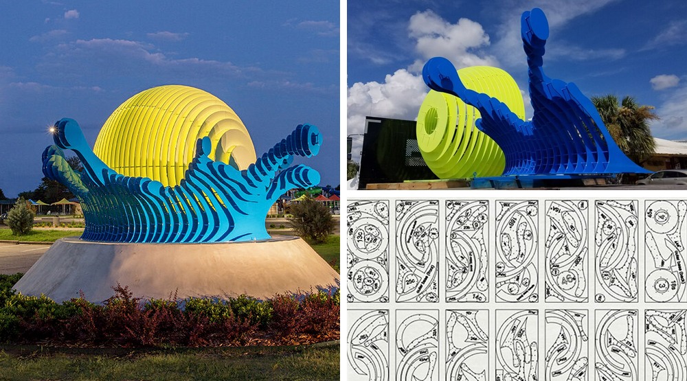 The work was tedious, but overall everyone was super fun and I could put on headphones and listen to podcasts while I sanded. It felt good to be around creative people, and the projects were large and interesting. After the aquarium project, we started on a piece for an aquatic park in Norman, Oklahoma. The piece was called Splash, and it was a 20’ x 20’ x 12’ tall aluminum sculpture of a ball splashing into water.
