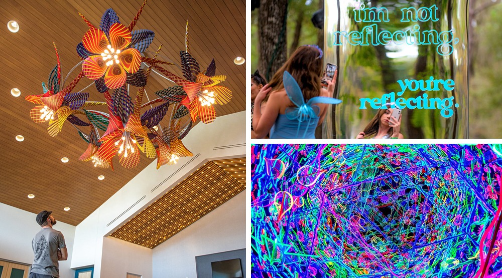 The Hulalith is a project I completed with Courtney Dodson and Bailey Gumienny in October 2021. The 8′ tall 3-sided dichroic mirror sculpture was for the 20,000 person music festival called Hulaween in Live Oak, Florida. This was my first piece made for a music festival.