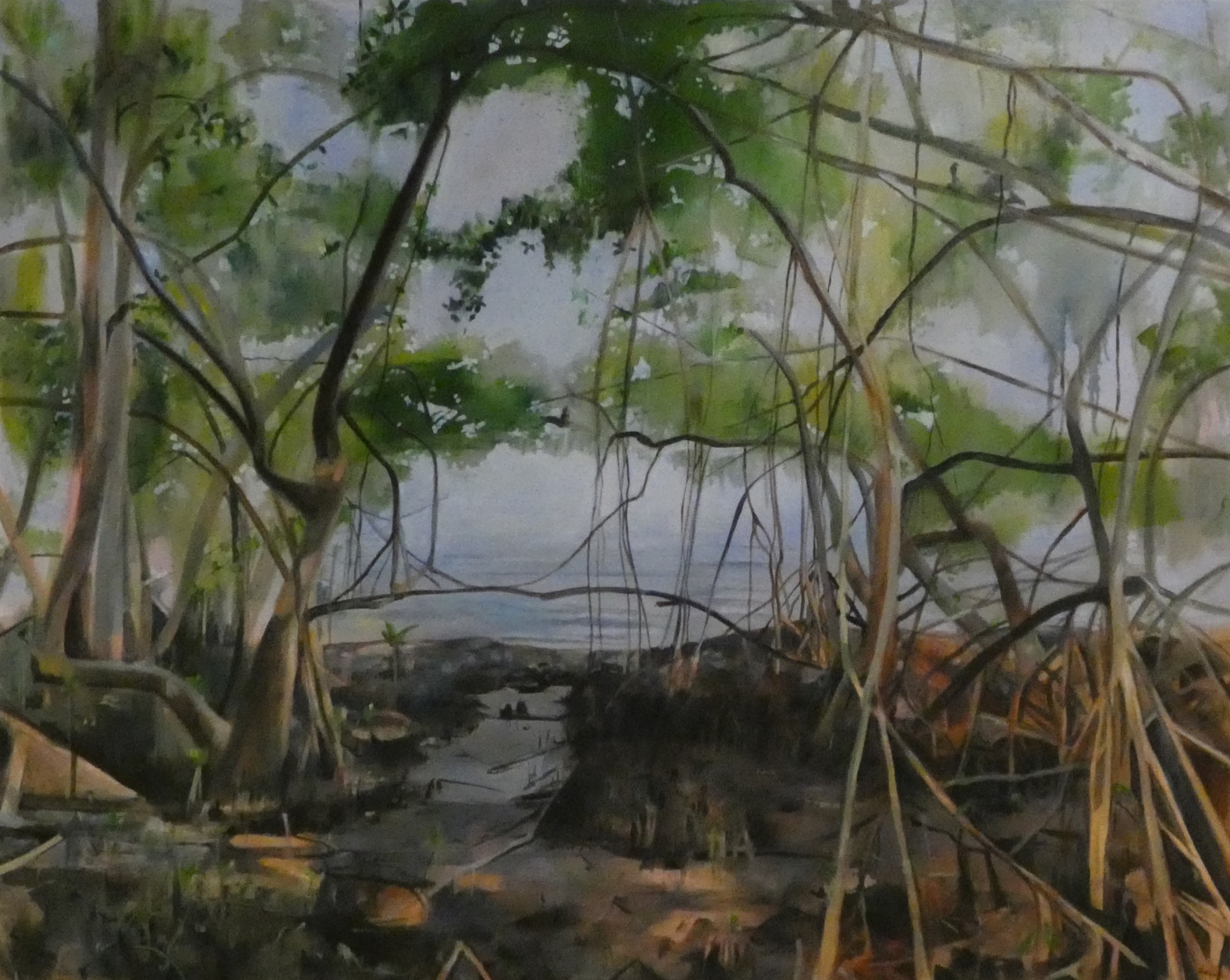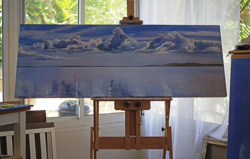 Harriet’s daily walks provide new experiences to ignite inspiration. “I take as many photos as I can,” she says. “It’s a combination of trying to capture things about the surroundings. Something that catches my eye. I don’t have time to draw and sketch while there. I really love mangroves, how they intertwine. How the light bounces off of them. But I am also drawn to light on water, the reflections — when the Bay is like a mirror and you see the sky reflected.”