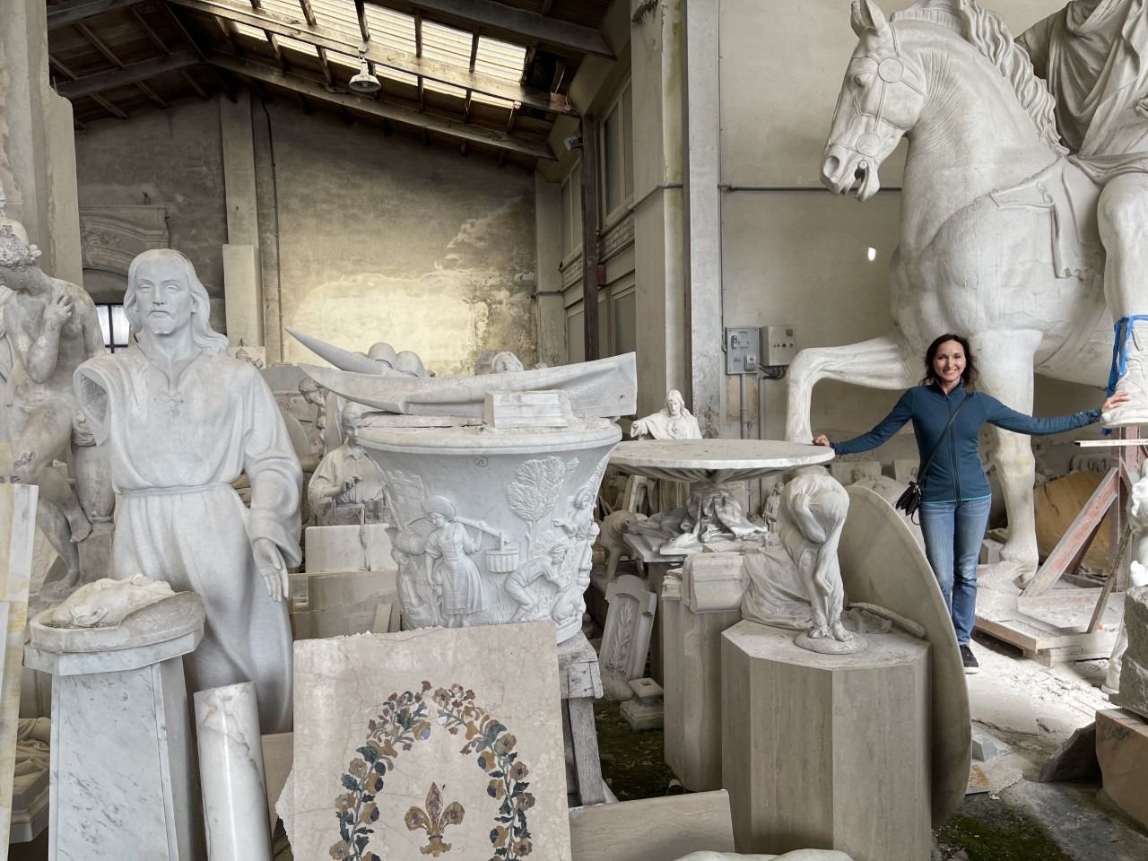 Pietrasanta is and has been the mecca for sculptors of marble and bronze for centuries. It is even nicknamed the “Little Athens of Italy” because so many sculptors came here to source the area’s iconic marble and work alongside its talented artisans. Being of Greek American heritage and owing much of the inspiration of my art to classic Greek and Italian sculpture; I was in heaven, to say the least! Michelangelo was among the most famous sculptors to work here as well as some of my favorite contemporaries such as Mitoraj and Botero. This region, including the nearby Carrara, is still known for its exquisite marble and exports much of it all around the globe.