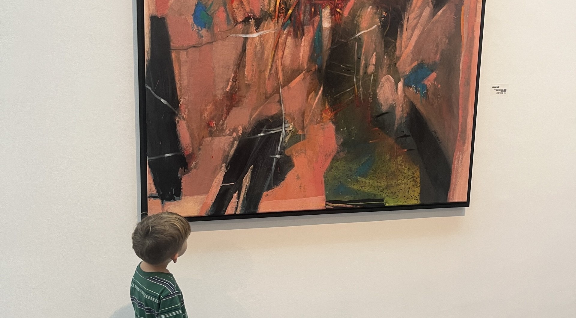 Thomas (now 3) made an impression on me as he gazed up at Luis Soto’s painting titled Nube #2 of a little girl looking perplexed in a desolate landscape with an ominous cloud in the background.