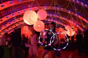 The glowing balloons provide a happy backdrop for a host of talented performers.