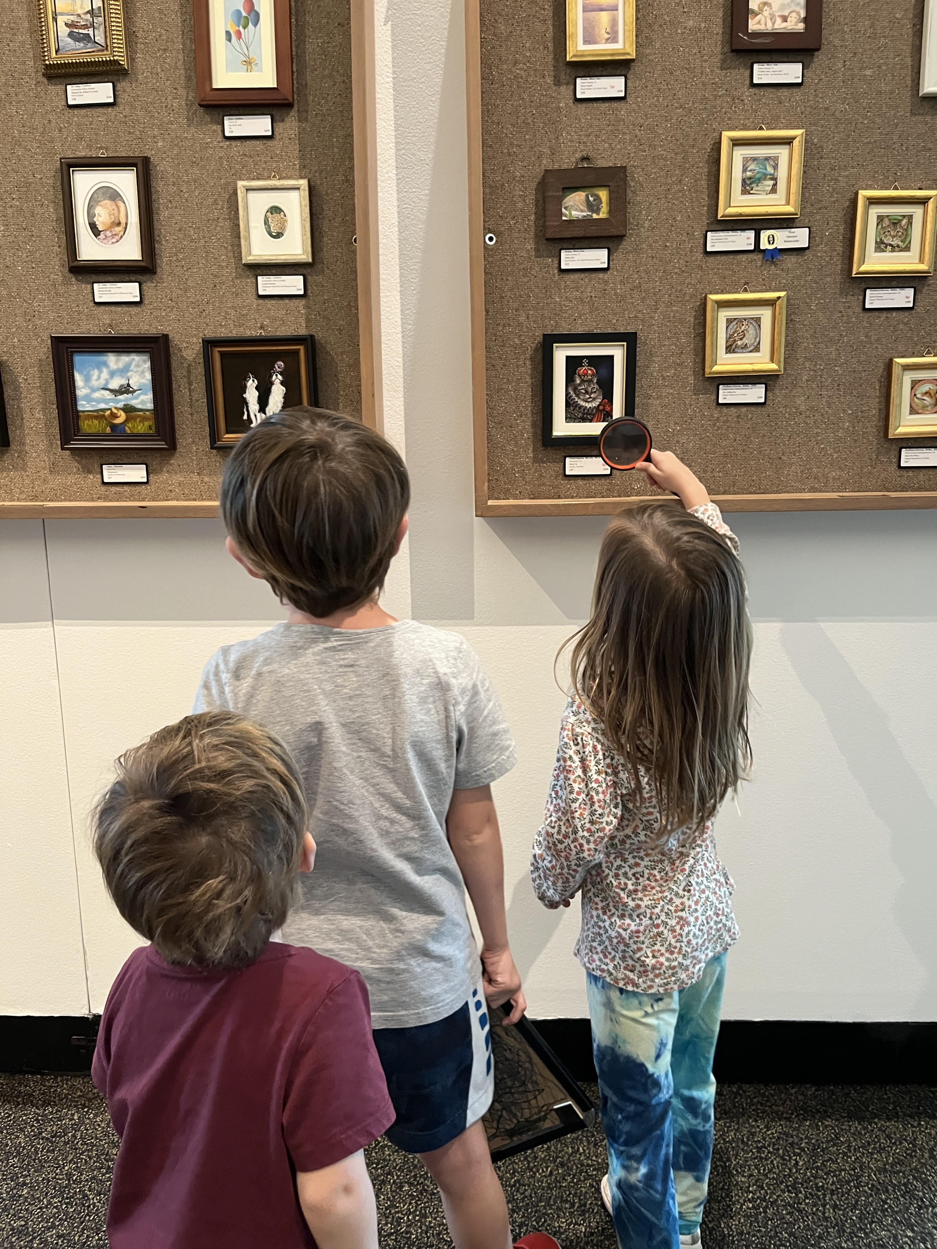 We entered the museum and my three kids eagerly borrowed magnifying glasses to view the works up close.