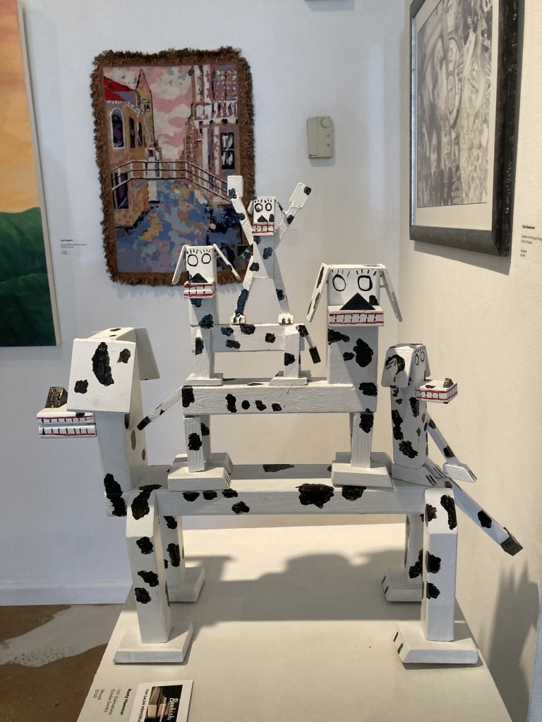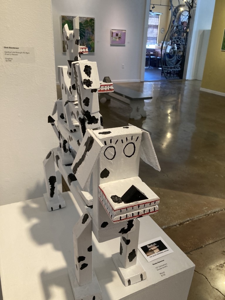 Appealing to the kid in all of us, Rusty Hammer’s playful wood sculpture of a tower of dogs was inspired by 101 Dalmatians by Dodie Smith. It won the show’s Tim Salen Memorial Award.