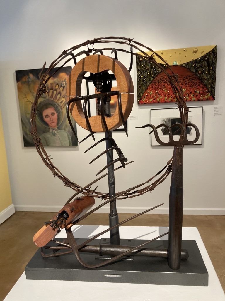 A robust sculpture by Sallie Hackett Brown that combined parts of pitchforks and barbed wire captured perfectly the grit of working class America that I remembered from John Steinbeck’s Grapes of Wrath.