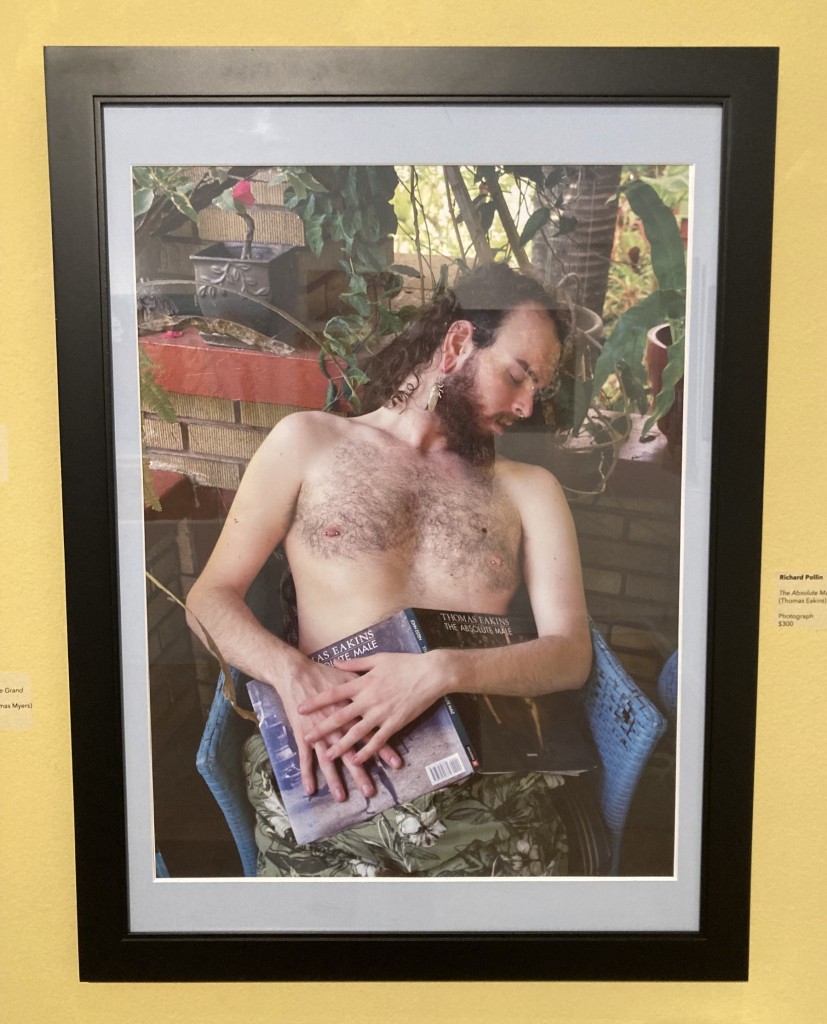 Kenwood-based Richard Pollin’s photograph shows a young bearded, long-haired, shirtless man who fell asleep while reading The Absolute Male, a collection of drawings of male nudes by realist artist Thomas Eakins (1844-1916). Was Pollin’s commenting on how boring Eakins’s obsession with male nudes was or did he want to provide us with a modern update of the Absolute Male?