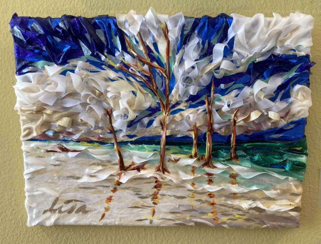 And who is The Keeper of Happy Endings in the Barbara Davis novel Lisa Bagley chose for her piece, a dynamic landscape made of flowing ribbons that seems to move through space?
