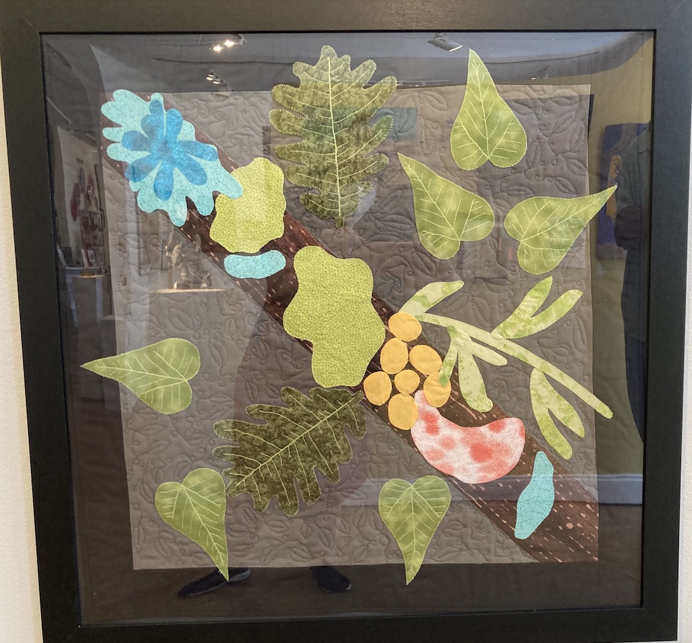 Also on my must-read list now is Entangled Life: How Fungi Make Our Worlds, Change Our Minds & Shape Our Futures by English biologist Merlin Sheldrake. Two artists picked this book – Amanda Izzo created a nature-inspired quilt painting while printmaker Peter Shurtz chose to honor the book with a gouache on paper rich in earth tones.