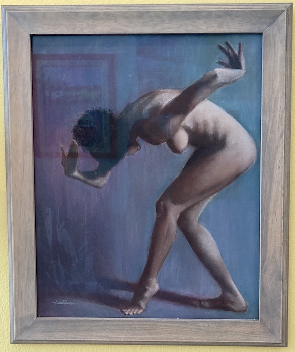 Ka-Rim Troyli’s pastel portrait of a bowing nude seemed to spring right out of Octavia Butler’s science fiction tale Wild Seed while Joe Terrana’s acrylic painting of ghostly disembodied heads was an eerie evocation of John Grisham’s heart-pounding legal thriller, The Runaway Jury. Terrana capped an Honorable Mentions for his Grisham piece.