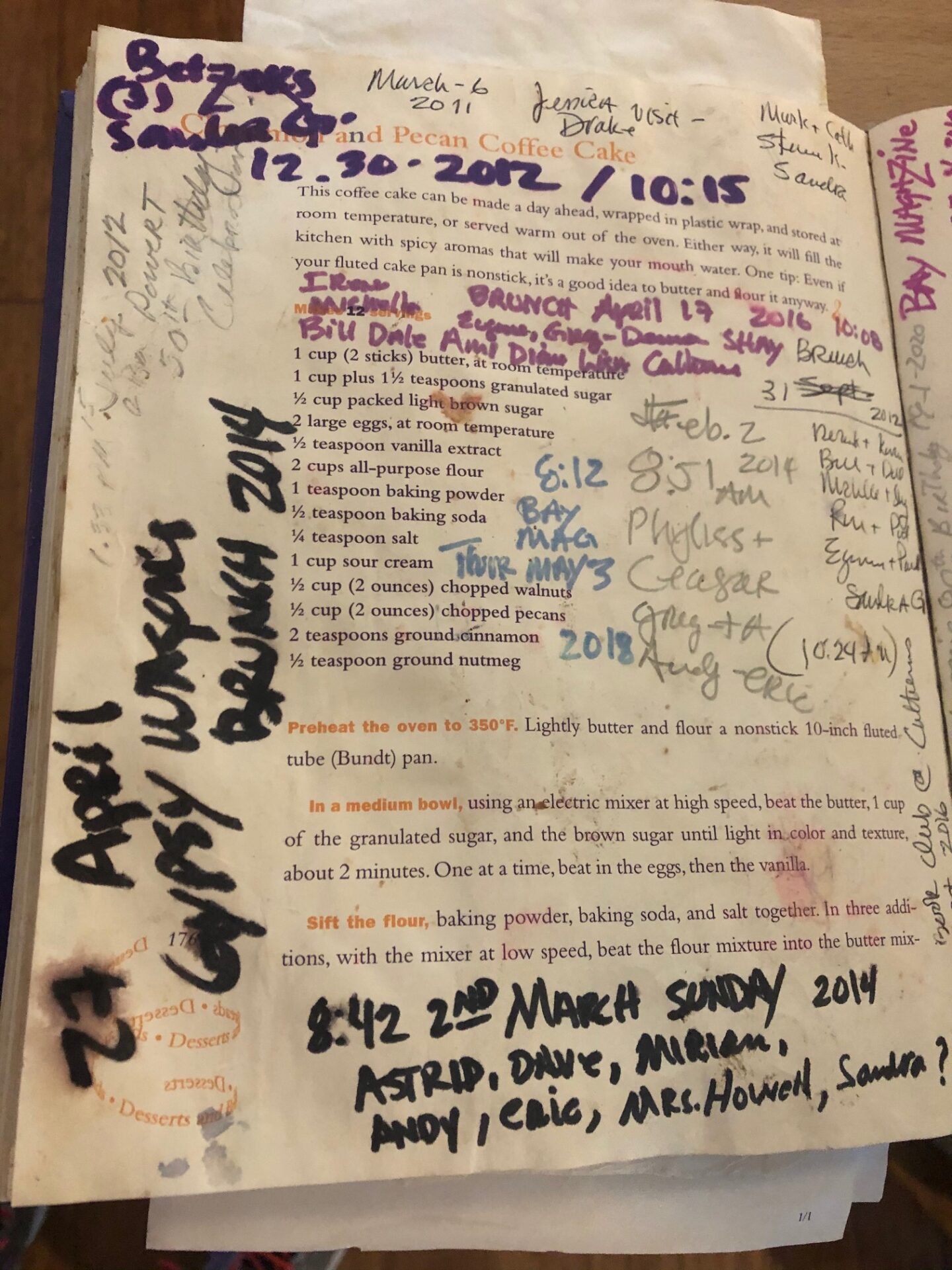 I learned how to cook from my mother, but the cookbook that I go to most often is Patti LaBelle’s LaBelle Cuisine: Recipes to Sing About – because soul food – you got the leavings, the scraps, and then you made it into something beautiful like gumbo, étouffée. I mostly use her book for my baking recipes – since I didn’t grow up eating Sour Cream Cinnamon Walnut Pecan Coffee Cake.