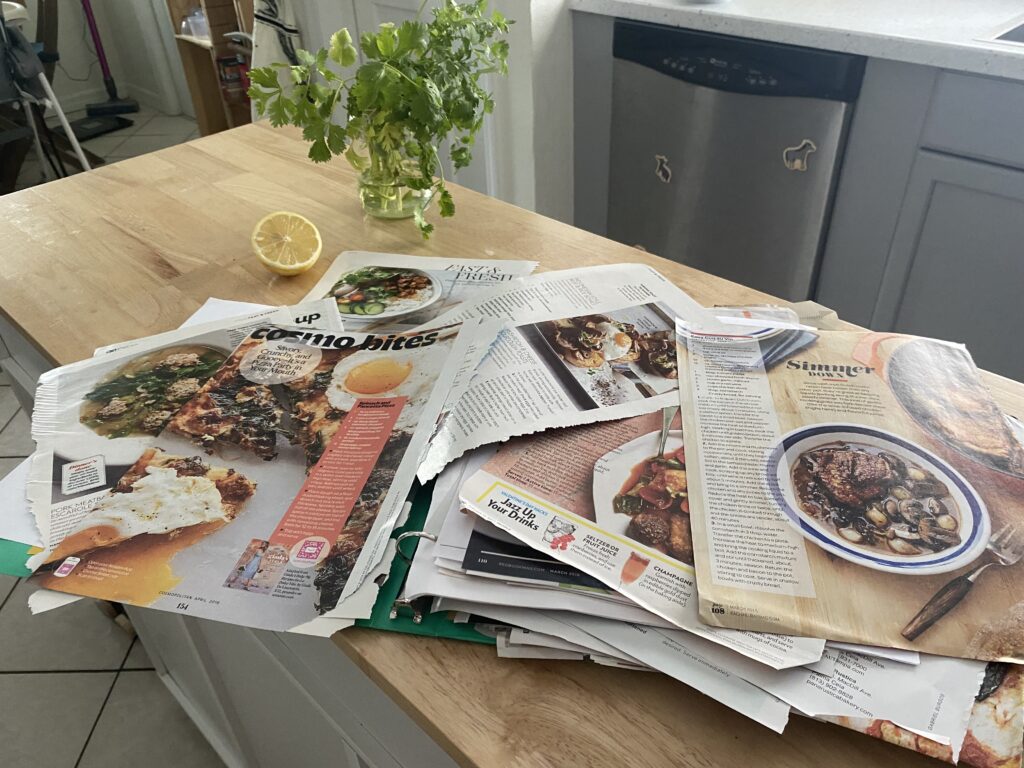 my bedside table and on my kindle. I also watch a lot of cooking shows and look at recipes online. The New York Times recipe app is one of my favorites.
