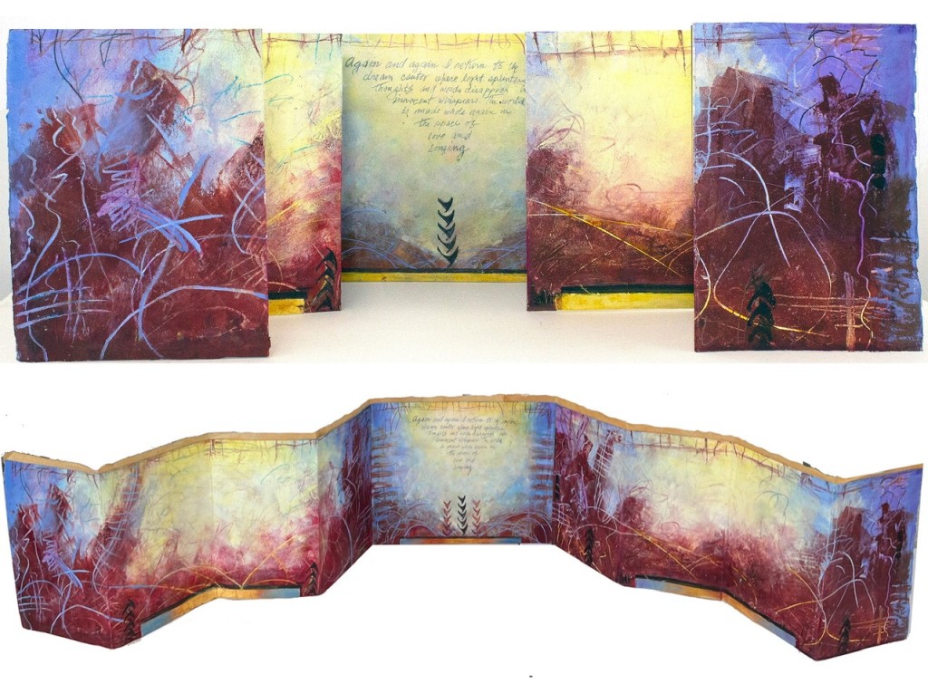 The Blue Book of Love & Longing explores the tangles, swirls, swoons and swoops of love and longing. Making artist books challenges me to reveal meaning through form and design.
