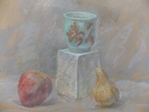 Some previous efforts in pastels below, from studio still life set ups: