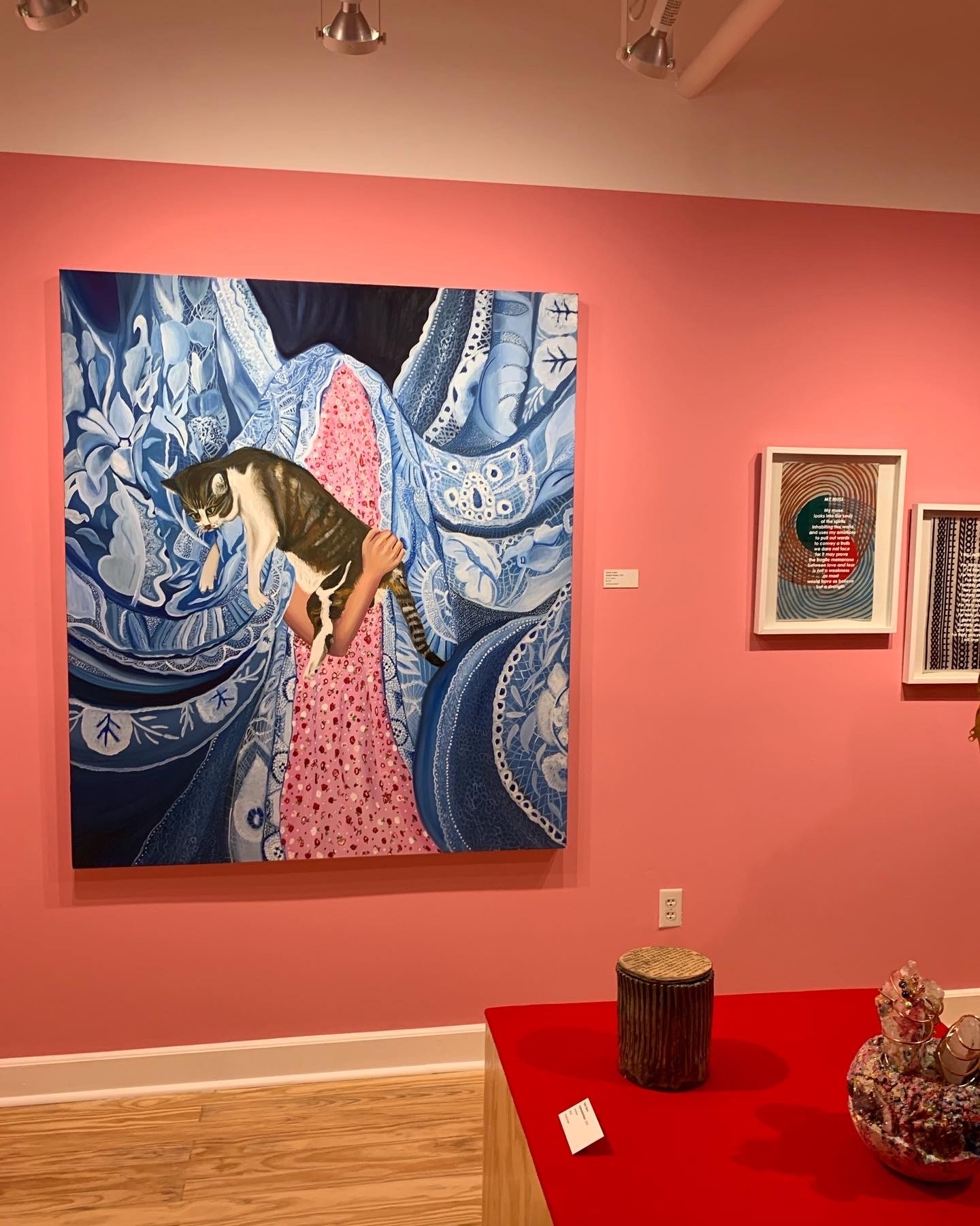 Here’s a picture from my latest show, at the Department of Contemporary Art Tampa on February 9th, the title of the show is At the Risk of Seeming Ridiculous and is an exhibition about love. I was honored that Emiliano, the gallerist/owner of DOCATPA, chose my piece Shayna Punim to be in it.