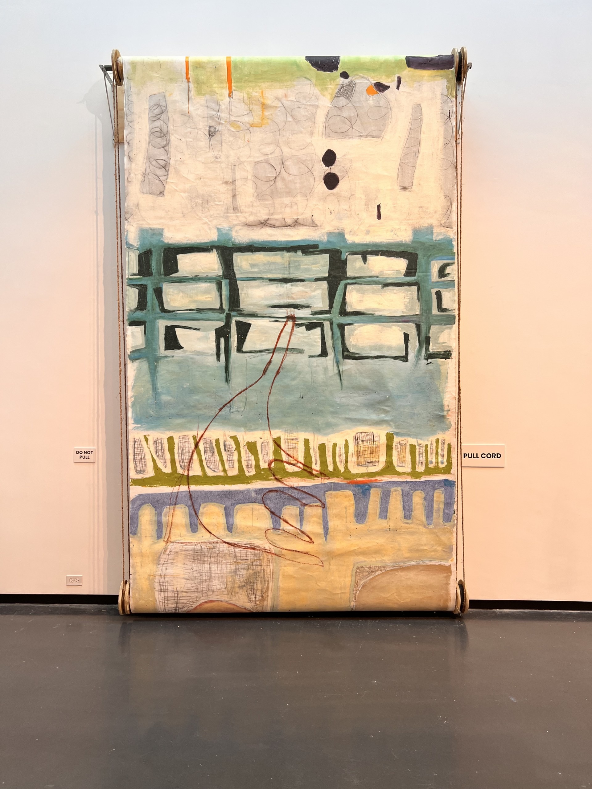 So I’ll pretend there’s a steady flow of money and go on with my idea. Which is that I will basically create exact sets so they run smoothly, the material has to be strong and light weight. I am thinking aluminum. Next a slit will run the whole way form end to end of the top and bottom spools so the paintings can slide in like feeding a piece of paper into a copy machine. The painting edges will stay in place by creating a lip on the canvas which will stop the canvas from slipping out. To address the pulley system I would like to devise a rubber sprocket so the rope can’t pull freely or wear down and become slippery. I would like to keep the natural elements that I feel are integral to the work, like the rope and the wood and paper, or Ill have to do a deep dive as to how the mechanics reflect a new meaning where somethings are machine made and they make sense to the work as a whole. So YES, THERE’S MORE!