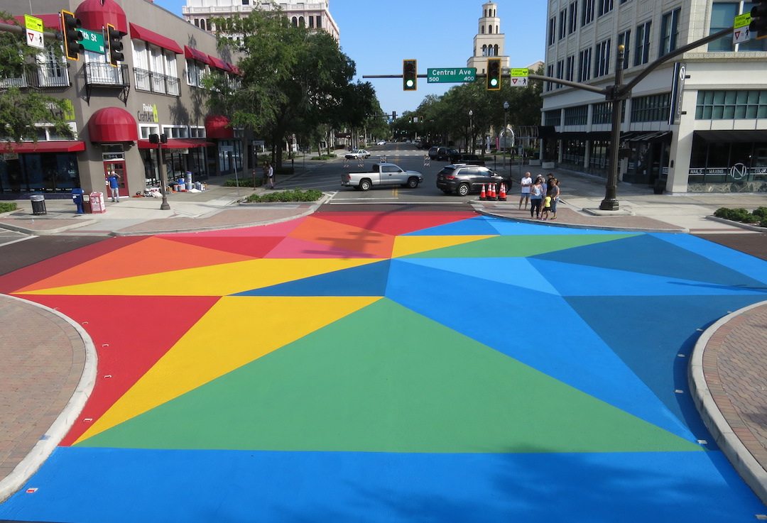 There is also now an intersection/street mural in Clearwater at Cleveland St. and Garden Ave. Summertime was commissioned by the Clearwater Community Redevelopment Agency (CRA). (Note – Lueza was selected from over 190 nationwide applicants for this project.)