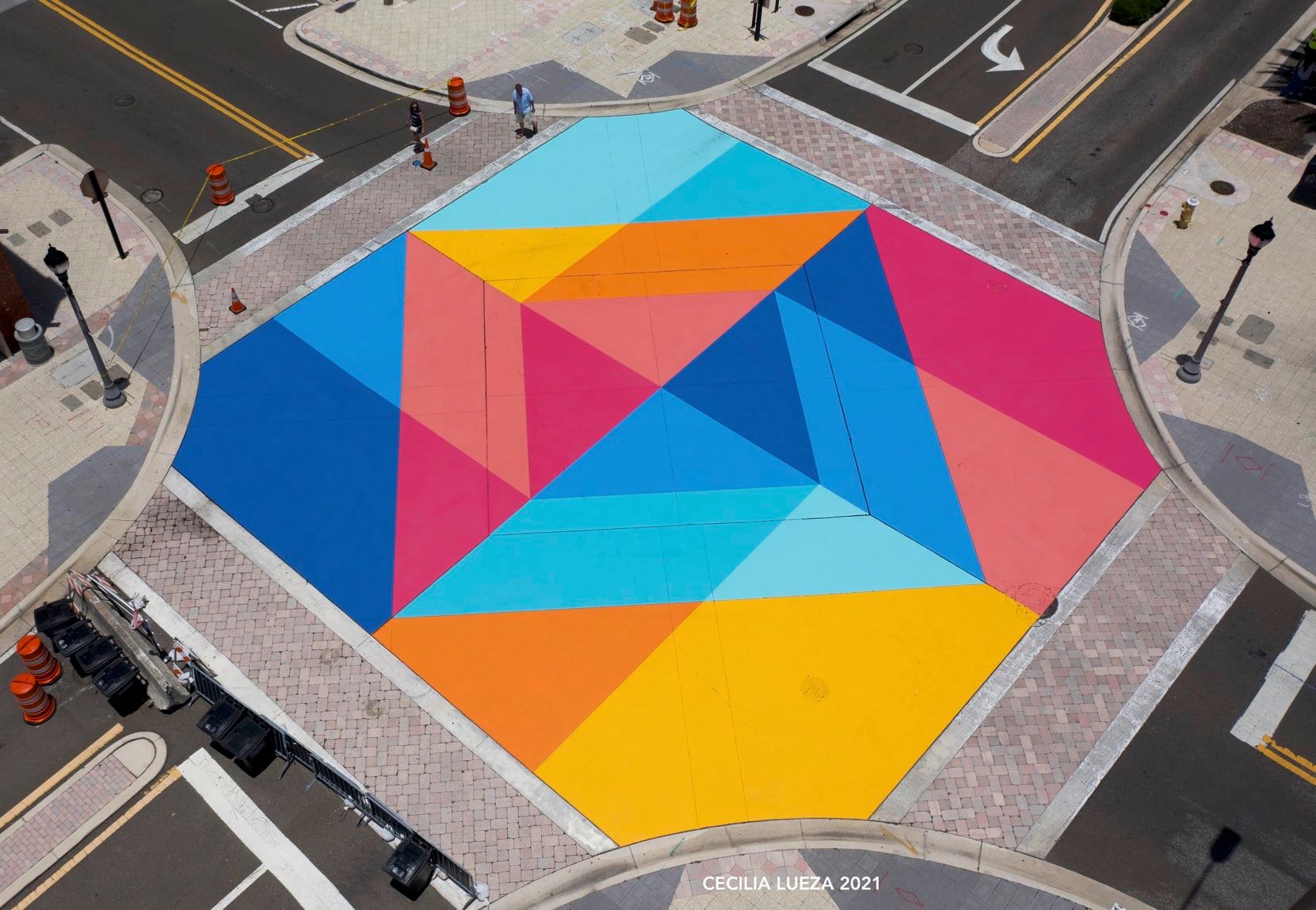 A.  Well, of course there is Common Ground, the street mural at an intersection on Central Avenue and 5th St. as part of the SHINE Mural Festival in 2016. It was a great opportunity to add my own splash of color to the city and I loved having the community, including the kids, help with it. I loved the unity and meeting so many new people. We’re ready to do a touch up!