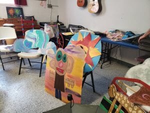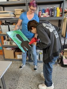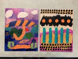 For their ArtLink project, they joined their musical, artistic and performance skills to form DEREGENARATION X and create New Musik Revolution 2020. It’s a story of brotherhood, fear and hope where they attempt to save the spirit of the Rollin’ Masterpiece Galaxy from evil. They worked to create lyrics, riffs and a storyboard that informed their larger mixed media pieces.