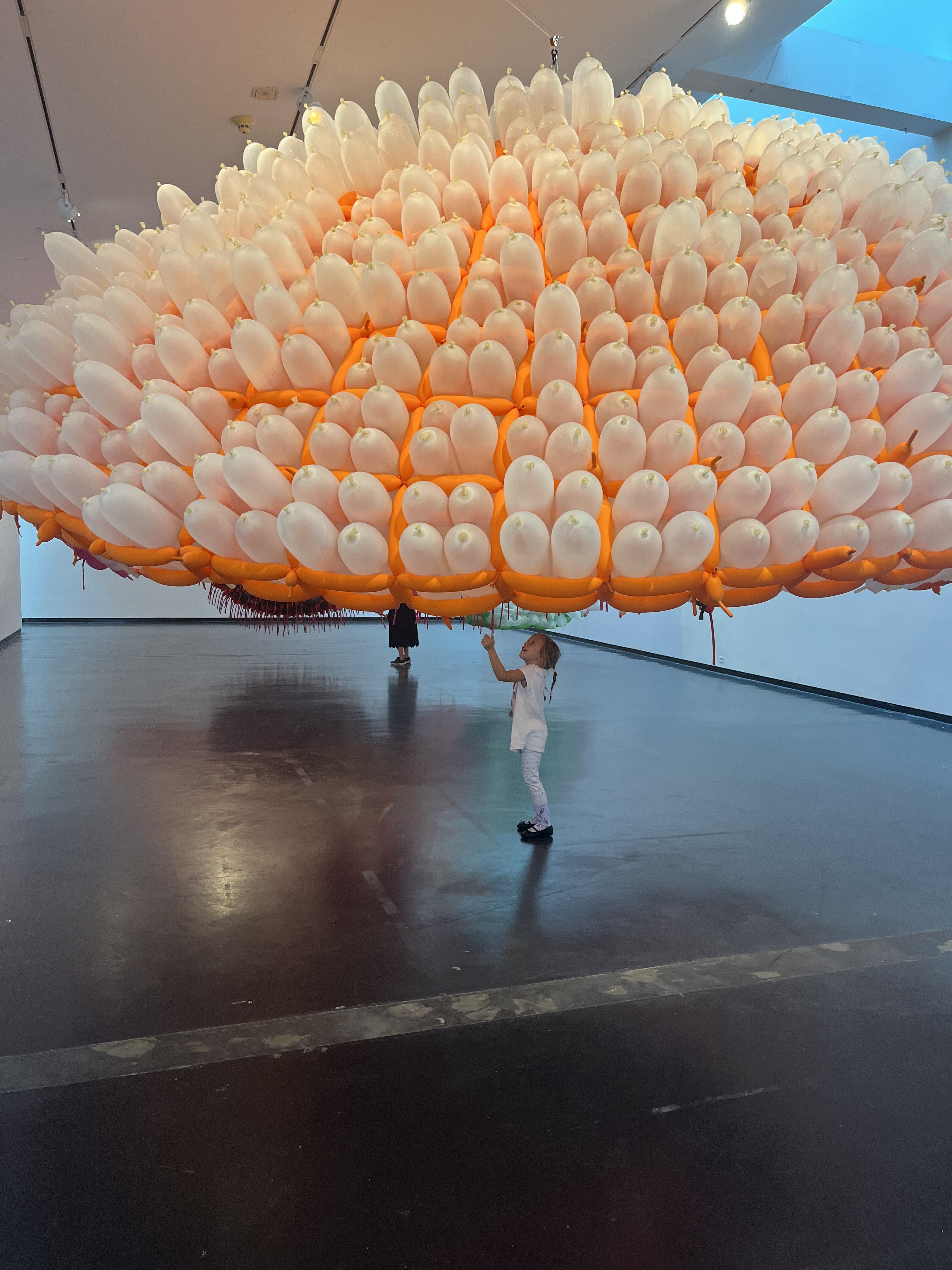 They saw balloons and thought ‘celebration’ so it was quite difficult to explain why they shouldn’t touch the work. When I reminded them that this was an art display so they should use their eyes, they decided to get on all fours and climb underneath the sculptures instead. We moved on from that room quickly.