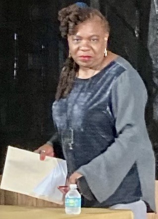 Fanni Green, a playwright, director and professor in the theater department at USF for more than ten years, was especially deft at “directing” the audience members when they unexpectedly were called onto the stage (urging one shy woman to “come into your light”). Providing a running commentary — at times entertaining, at times wry — throughout the play, Green always took pains to say “That was me” when she deviated from the script.