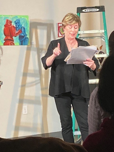I saw this “experience” twice — first starring Fanni Green and then a couple days later with Beth Gelman, two seasoned actors based in Tampa Bay. Their performances were part of American Stage’s 10-show presentation of White Rabbit, Red Rabbit, staged from November 2 to November 19 with 12 different actors at different (and unusual) venues in St. Petersburg, including a Black church (Historic Bethel AME), an art gallery (WADA ArtsXchange), a creative arts district (The Factory), an event venue (Savant on Second) and a museum (The Woodson) – and in Tampa at a college campus (the USF Theatre Center).