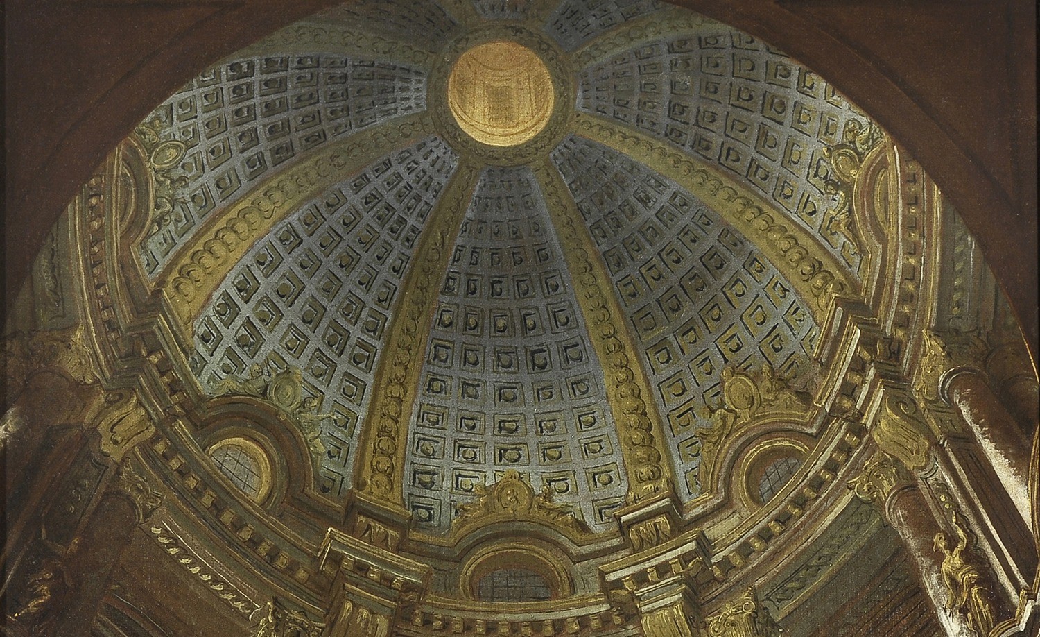 On the other hand, the dark parts of the painting may simply be vehicles to make the bright parts show up better. Look at the cherub in the bottom right. His head dark in shadow allows the light to reveal his exquisitely painted bottom. Perhaps, all is well after all.