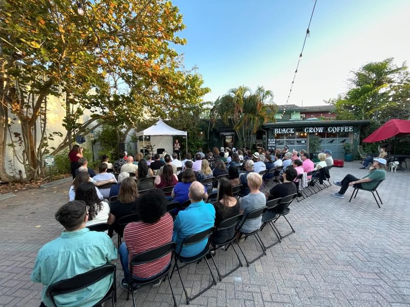 The bookstore set up its glorious courtyard for the event because we’re in the window right before it’s too hot for pleasant outside events