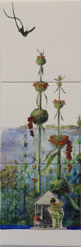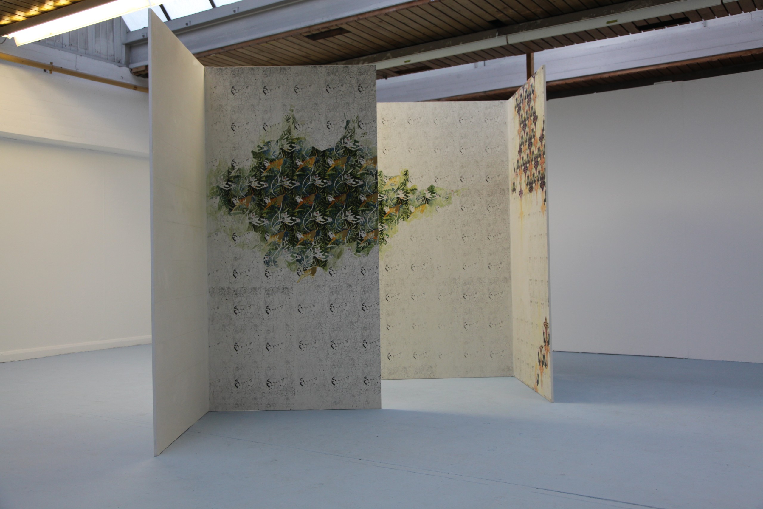 The next part of my adventure took me to Newcastle upon Tyne for the Master of Fine Art. Even during this chapter I traveled and was thrilled to have completed a visit to Venice for the 54th Biennale. Post-graduate studies challenged me to use visual arts to express complicated subject matter like national identity and cultural studies. I finished in 2011 with a compilation of collages and a screen printed installation entitled “Contrapuntal”, an 8 sided screen-printed and hand-painted gouache on boards coated with true gesso.