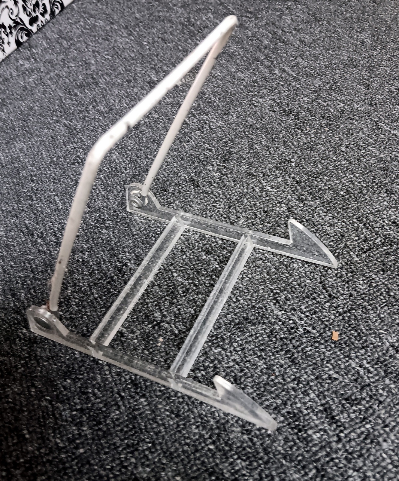 I had no stands to use but did find some cheap foldable plate stands at the local dollar store. They were good enough to prop up the pieces I created.