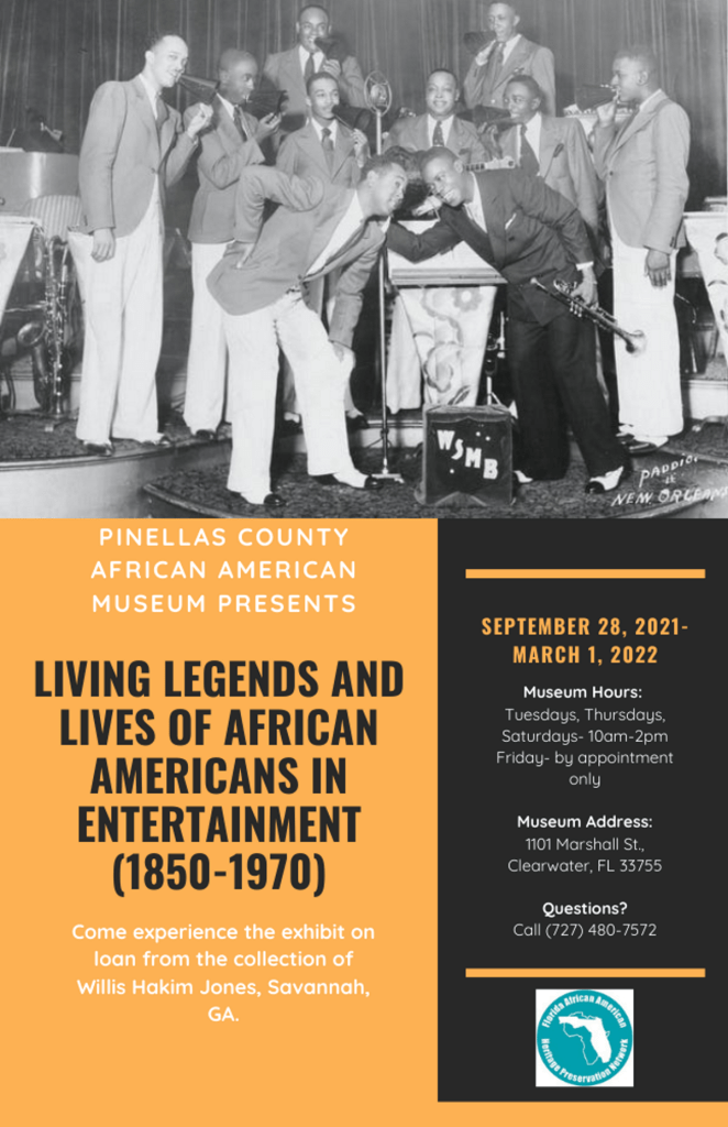 Currently on exhibit through March 1 at the museum is Living Legends and Lives of African Americans in Entertainment (1850-1970), a collection on loan from historian and avid collector Willis Hakim Jones of Savannah GA.