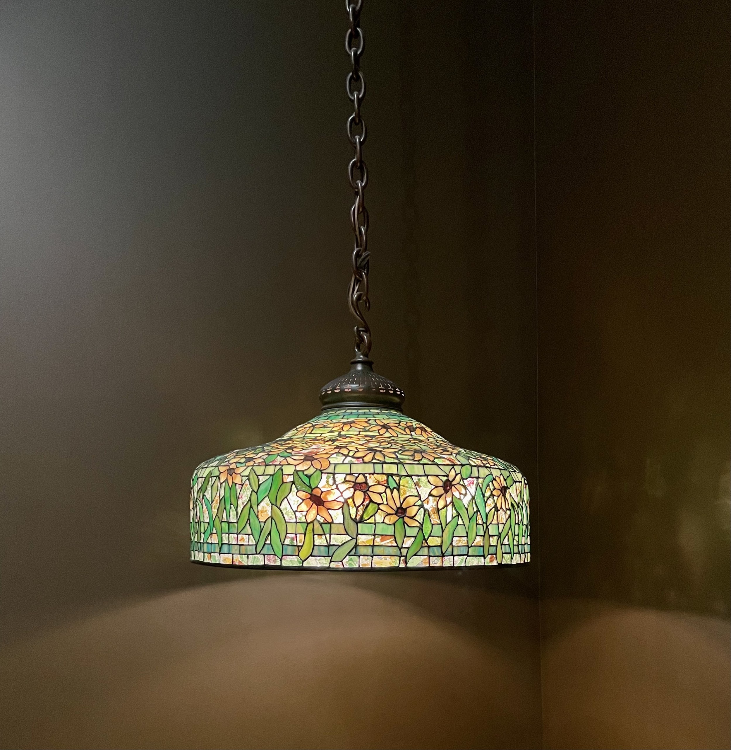 Settling into adulthood, Tiffany found success as an artist, exhibiting often in New York and abroad. The time Tiffany spent painting only deepened his interest in color and light, leading him inevitably perhaps to the consideration of glass as a medium. As early as age twenty-four, he was studying the chemistry and techniques of glassmaking.