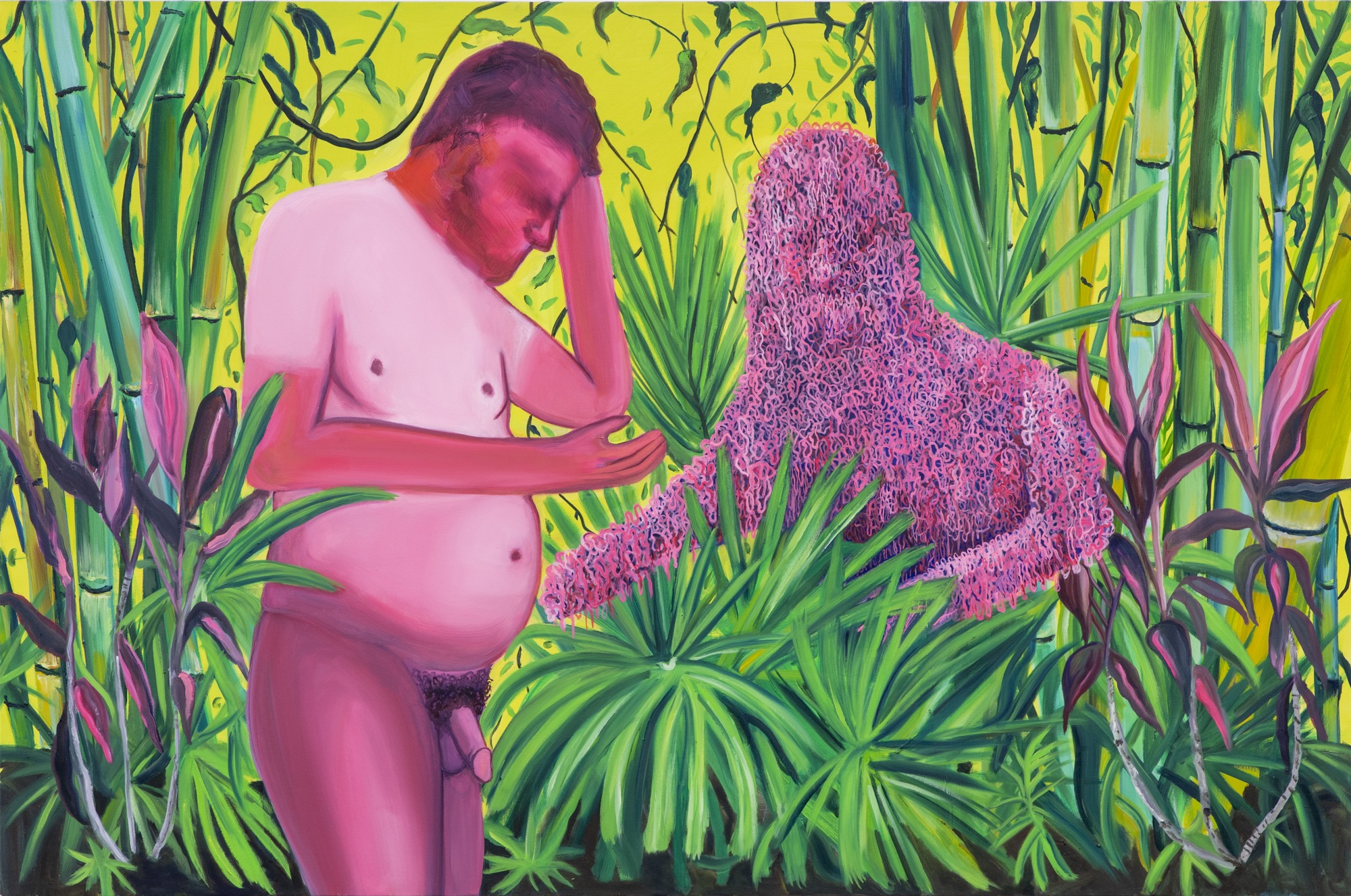 One element of my work that has clearly influenced my work is the lush, tropical plant life of Florida. I have used the lush patterns and colors to influence my work and think about the poeticism of nature and women.