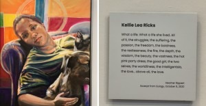 I started to share about my pieces one by one. Three other women there (who appeared to be a mother and her two daughters), Sue & Dave, and my beautiful friend Jodi listened and asked questions as I discussed many things about my pieces. I talked about the background stories, the process, the healing, and the love between me and Dad and me and Kellie Ricks. I spoke openly and from my heart. Others came through and listened in here and there, as well.