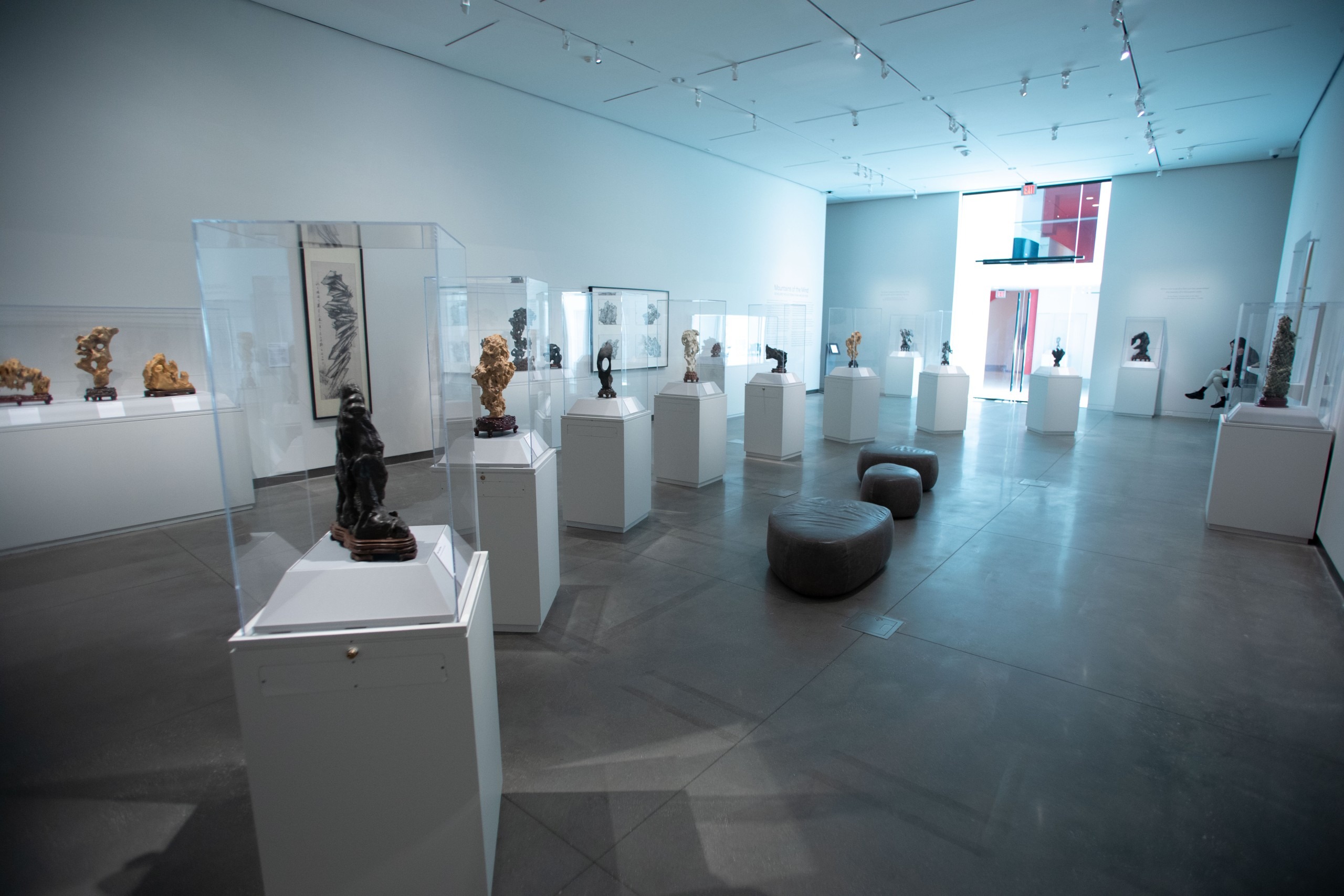 The exhibition consists primarily of scholar’s rocks from the private collection of Nancy and Stan Kaplan. “They started collecting scholars’ rocks after Stan purchased their first one at an antique fair,” says Paget, “he moseyed on down there, on the weekend, and called Nancy saying he’d found something and bought it, so he brought it home in his backpack.”