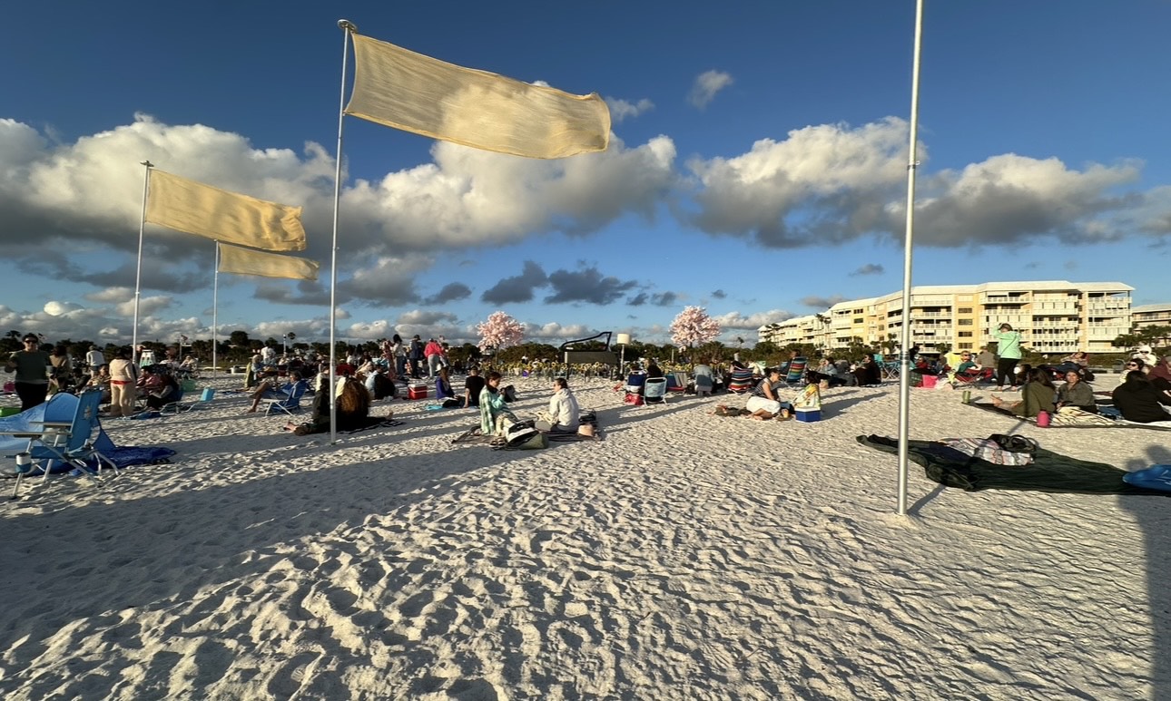 Five hundred beach dwellers gathered on Upham Beach, a leg of St. Pete Beach, for a mystical, ethereal journey into a masterful piano solo that explored an intrinsic human emotion – joy.
