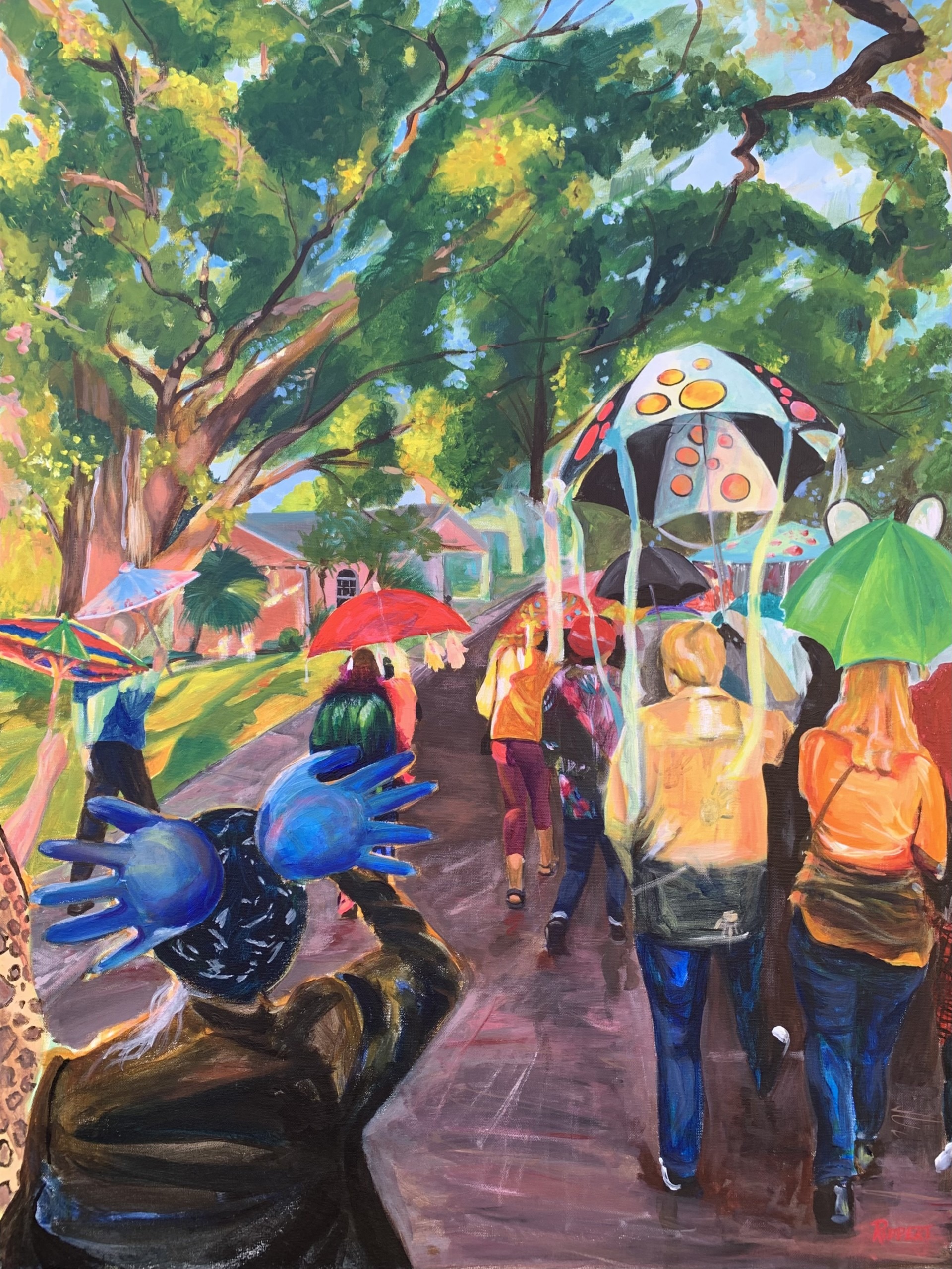 It hadn’t dawned on me yet that I would paint that scene. The parade drew me in. Among friends, I was swept away into the childlike fun and joy of it all.