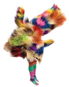 Woods describes the excitement backstage and the constant sounds generated by Cave’s creations. “Huge boxes everywhere, filled with colorful costumes. So much color and texture and the rustling of raffia.”