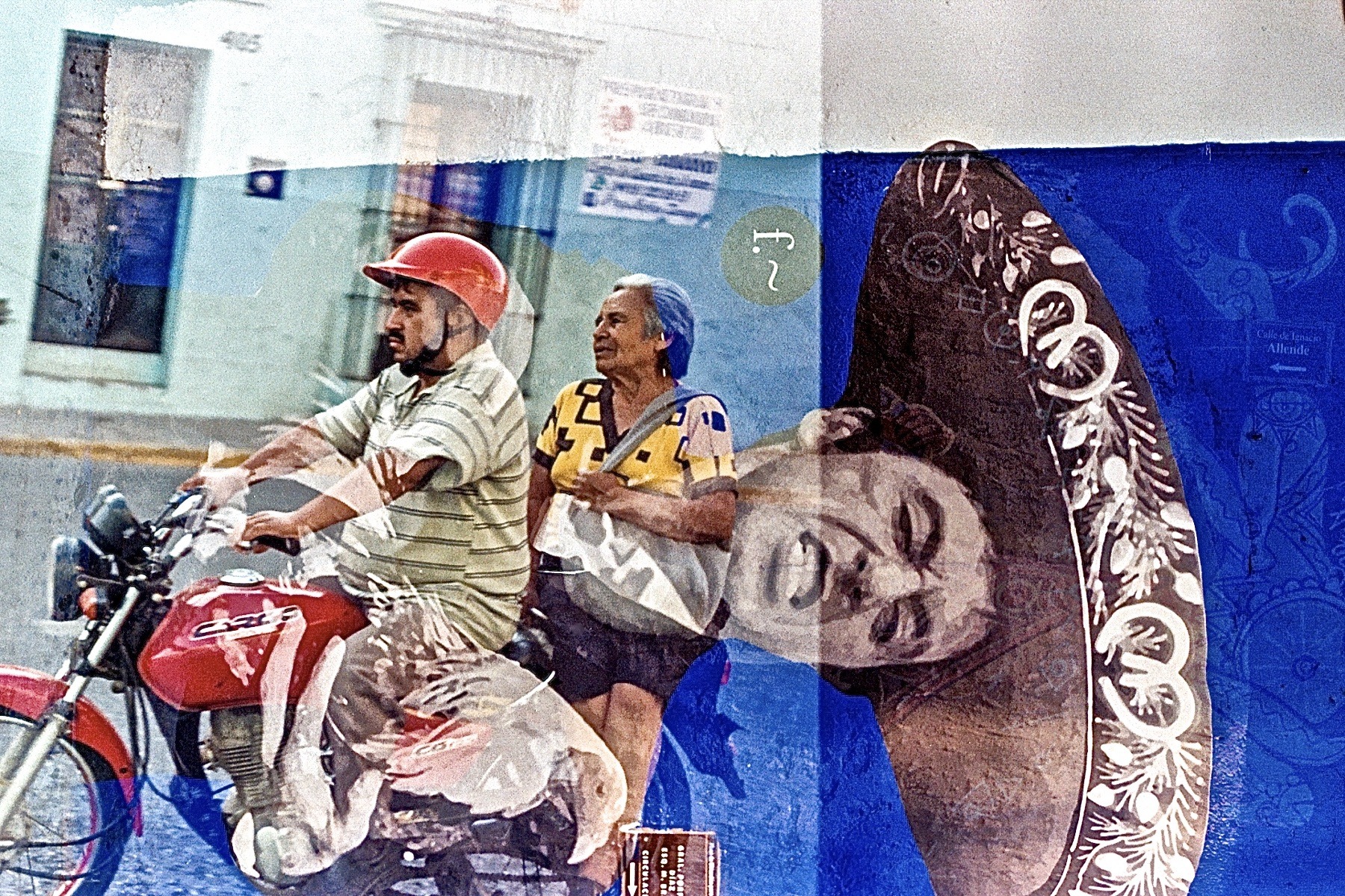 All improvisation, both skilled and unskilled chance, the counterclockwise then clockwise conning of the lever at the top of the camera body, an eye rolling in the view finder, no comfortable rhythm, no photographic groove, ease, no time for a repair, no way to replace the camera on my travel budget. I had a month and other cities to visit. Swollen, bulbous and blue, my foot was no stranger to the bell tower of Hugo’s cathedral. Even my Esmeralda was tired of helping me with my Spanish. Si for yes. Sacapuntas for pencil sharper. Sientate ojos for sit down eyes but not much else. Time, I told myself, to think about movement differently. Ace bandage, one crutch or none? No caste. Time to limp like a bent lens through color, Casa Azul, then the glint of sliver gelatin, but not quite the ice pick of pain that killed Trotsky. Fuss, I could, with the contrasting layers, the tension of focal length, the grayscale of necessary distance, all gathered like a protest in the overexposed black and white. I had three rules: lean against a building for support, shoot before and after the picture saw me, and every so often sit and remove my shoe so my foot could breathe, shrink through throb.