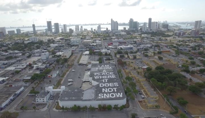 Through April 30: O, Miami Poetry Festival. An impressive variety of events underscore this festival’s mission to engage everyone in Miami-Dade County in poetry encounter during the month of April. Commemorating the festival, “Poems to the Sky” encompasses two giant poems painted on the rooftops of buildings (pictured above) near the flight paths of departing and arriving flights at Miami International Airport. The project was created by artist Randy Burman as part of the 2016 O, Miami Poetry Festival. Both poems were written by students at Orchard Villa Elementary School in Liberty City: Nieema Marshall (3rd grade) and Tywon Williams (4th grade). Each day, approximately 650 planes pass over the poems. For more information, visit omiami.org.