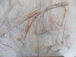 Swamp Space drawing instruments: natural wood charcoal and silverpoint, 2018