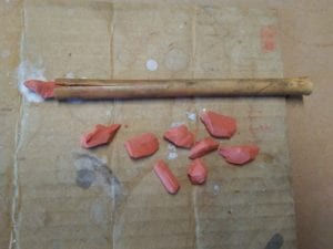 Natural red chalk inserted in bamboo holder; chalk pieces, 2020