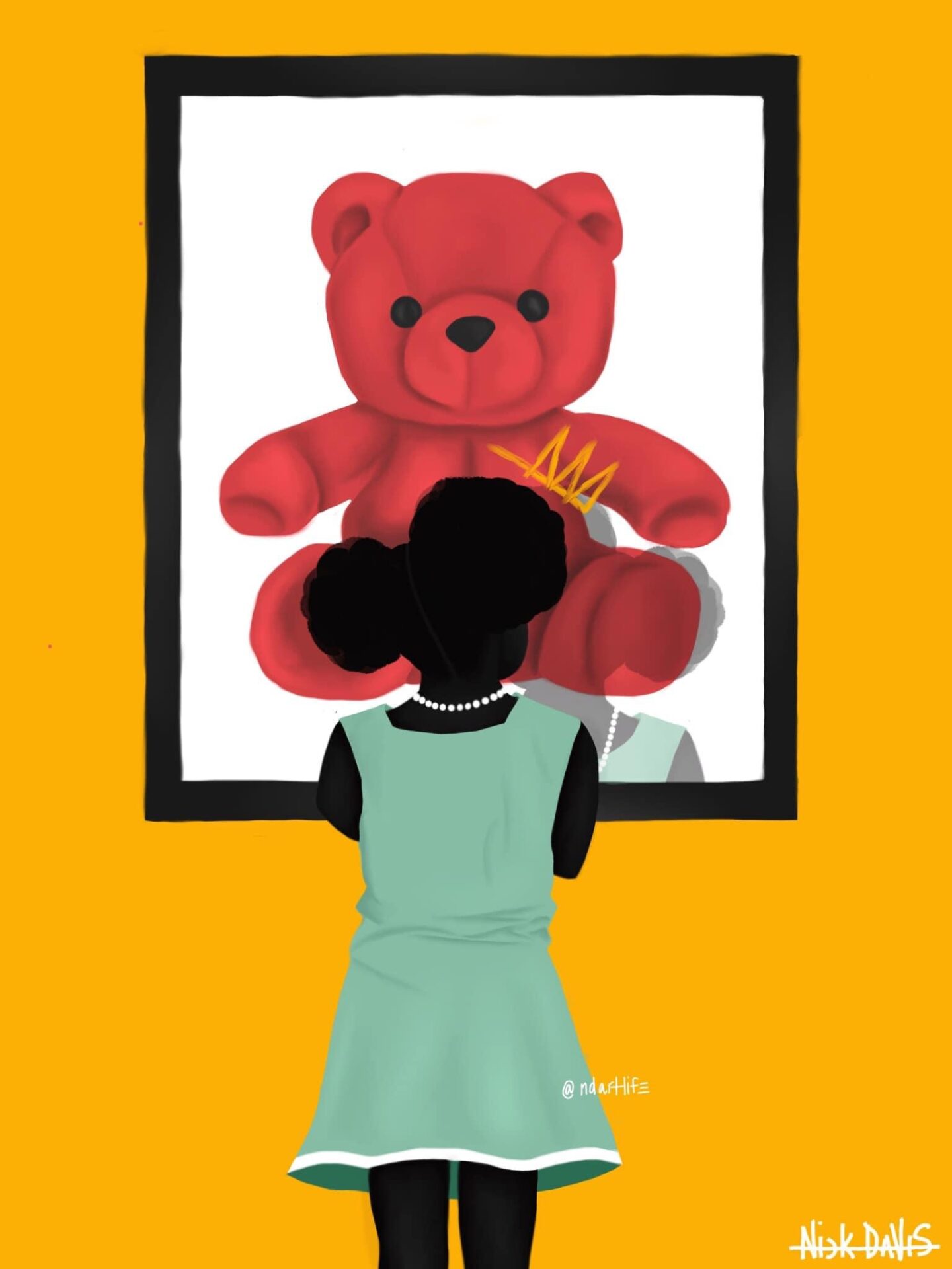 As I entered this week I found myself thinking about my community and the people I come across on a daily basis. Living in the same neighborhood I grew up in, I’ve noticed a pattern in lack of emotion. Emotion is something I continue to show and express in my art simply due to the lack of it. In my art sometimes you may see  a man crying or wearing a certain color, patterns. In my art I just want to continue to show my community that their authentic self is beautiful. Showing your true self without reservation is beautiful. I hope to influence the ones around me that who you are is beautiful alone.