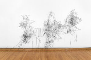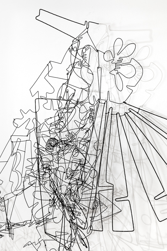 Through the process of drawing, cutting and assembling I create compositions that challenge the viewer to look closer and to investigate the imagery presented. At many times through this intuitive process, the evidence of the hand becomes apparent. In addition, the indexing of time spent is quite evident in many of my pieces. The distortion within compositions echoes the conflation of fragmentary visual information within the 3D shapes that make up the overall construction. The assemblage process emulates the visual fusion of information embedded in the shapes. Through the process of making, shapes acquire qualities of the positive and negative counterbalanced by a reading that is both abstract and representational. The use of motif based signifiers in relation to the Caribbean landscape helps to engage the viewer in an active search for meaning. The visual layering of the shapes in my installation works and also drawings amplifies the exaggerated distortions portrayed. The use of line in the work references a symbolic continuity of process and language. Drawing in a two and three dimensional manner becomes a way of discovery for myself as well as for viewer. The overlapping layers, lines and imagery create a constantly changing experience within this fragmented landscape reminiscent of my struggles and acceptance in creating a bicultural identity.