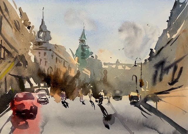 Thankfully, my COVID symptoms remained mild as I prepared for Watercolor Live. Day one was fabulous. It began with a demo by South American artist, Alvaro Castagnet alvarocastagnet.net . His fast and fresh approach appealed to me immediately and got my engine going. The featured image of this blog is my artwork from painting along with Alvaro’s energetic demo.