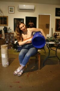 We agreed on the basic composition and I then hired a model. She came to my studio for a short photo session and this is the image I used for the figure in the painting.