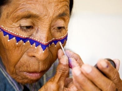 Their respective godmothers paint their faces with traditional designs. They remain isolated. They have to stay awake the whole last night of the celebration and not eat meat. Before sunrise, the family women bring them to the beach where they are purified in a ceremonial way, washing their hair with sea-water. This ceremony means that they are old enough to be married.