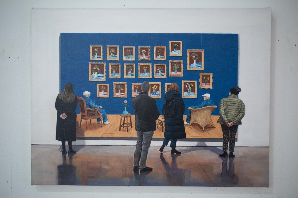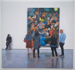 For the paintings of people at art galleries, my rule is the people in the paintings need to be at that exhibition. They’re not necessarily in those spaces or spots – I compile photographs of them and piece them together in Photoshop.