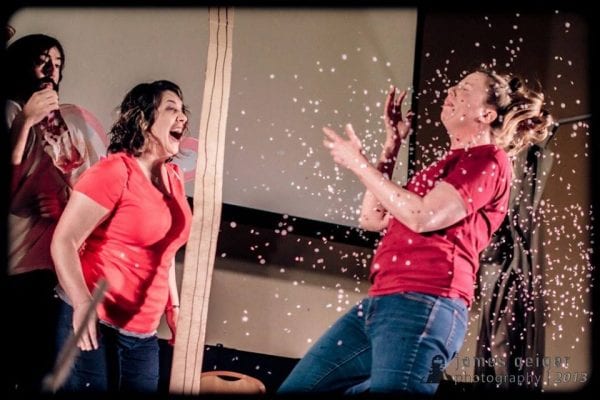 Jonelle, Emily and I have shared the stage of SSoS since the beginning. We have had so many roles that we love and cherish. I think one of my favorite times on stage together was when we all played a guy name Chad. That particular episode (that’s what we call our shows) was very female heavy cast. One of our writers wrote a sketch for 5 guys all playing a different frat guy named Chad. I thought to myself … I think the ladies can do this … and so we did. We all “guyed” up and played different Chads with one of our male actors playing a guy named Greg. It was so well received that our audience has asked for more from those characters. I believe you’ll see the Chads some time soon!