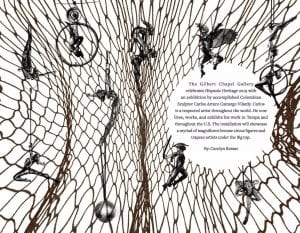 During the month of October, Camargo Vilardy’s circus sculptures will be exhibited as Arturo’s Circus at the Gilbert Chapel Gallery, 212 3rd St. N. In downtown St. Petersburg, sponsored by the St. Pete First Art Collective. The exhibition opens on October 12 from 5-9 p.m. during Second Saturday Art Walk.