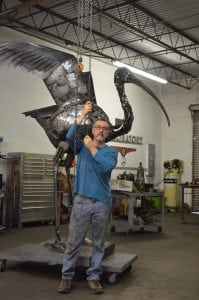Chris Urso, a photographer from the Tampa Bay Times has been shooting video at my studio over the past several months. He’s been documenting the progress of the stainless steel head and even went so far as to install a time lapse camera which clicked away for a whole month shooting the goings-on in the main part of the studio. Click, every 2 minutes, day and night.
